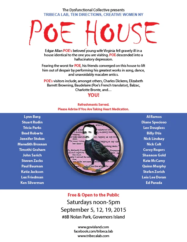 Fearing the worst for POE, his friends converged on this house to lift him out of despair by performing his greatest works in song, dance, and unavoidably macabre antics.